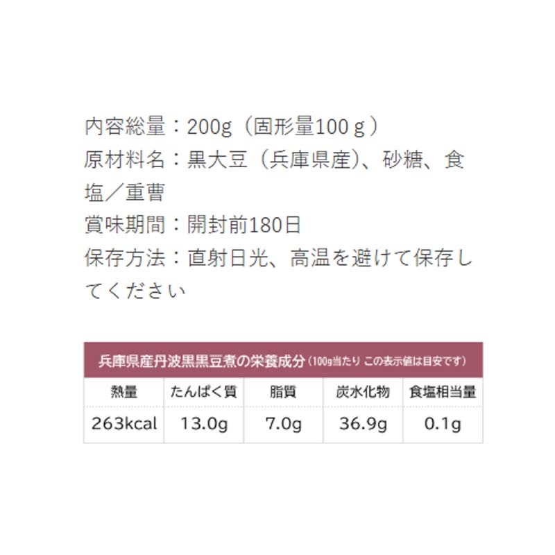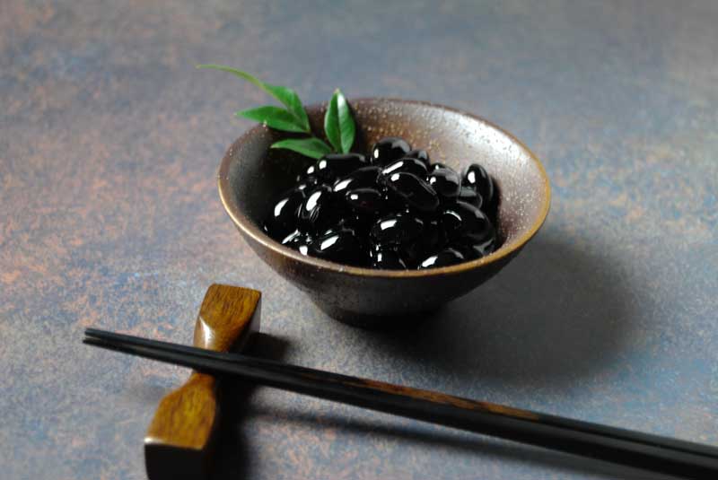 兵庫県産丹波黒を100%使用し、しわのないふっくらつややかに大粒の黒豆を炊き上げました。
