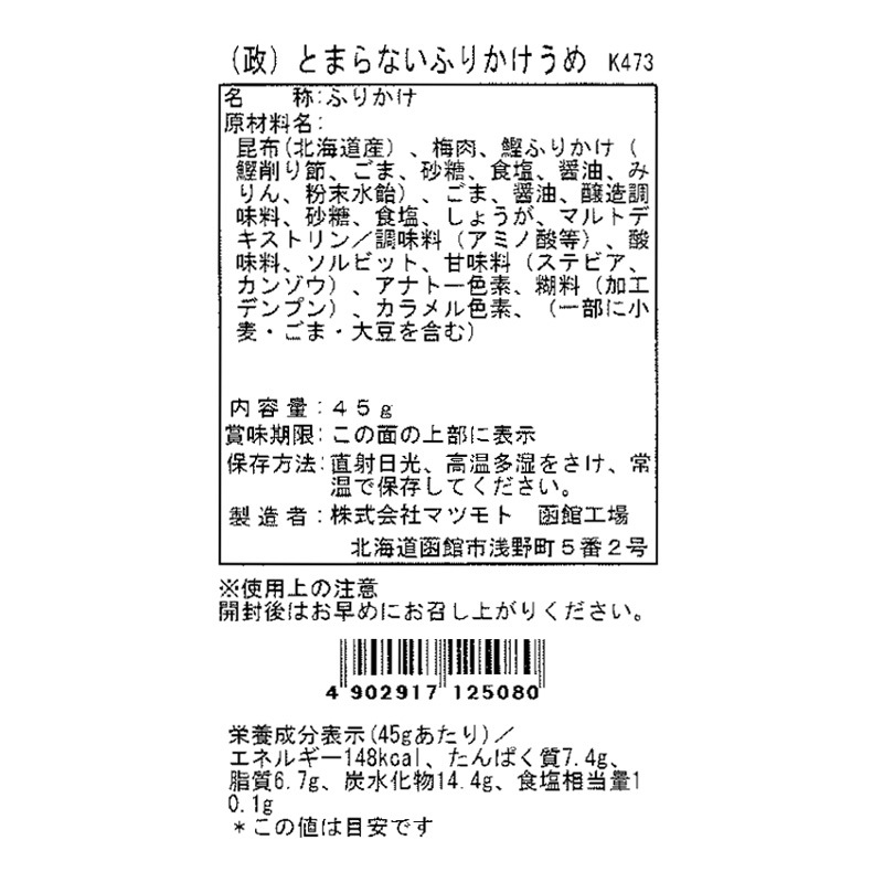 【セット内容】 (昆)ニセコ68g、三菜昆布75g、かつおしぐれ67g、とまらないふりかけ・うめ45g、ふりかけとろろ15g、ホッペちゃんふりかけ塩昆布45g